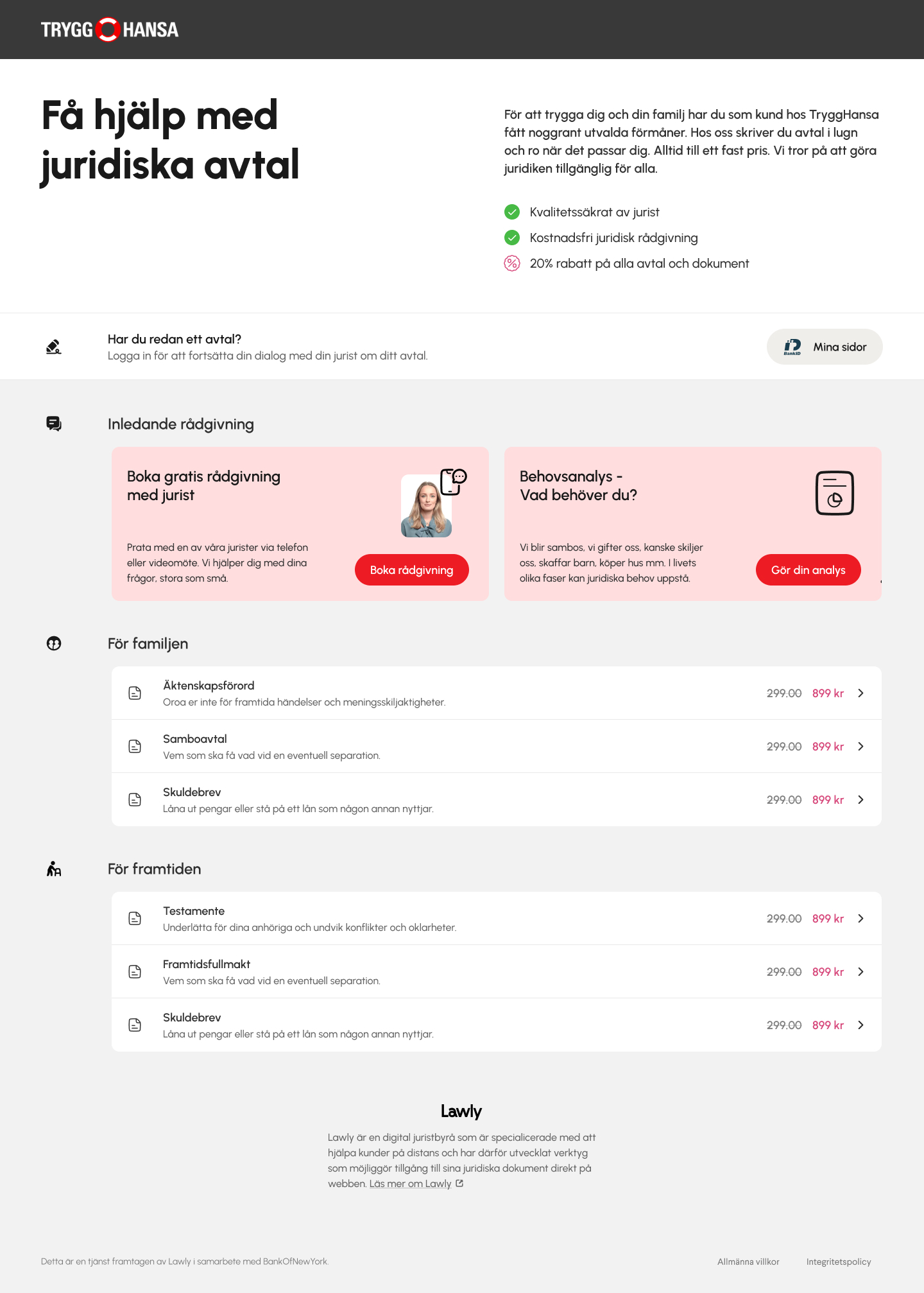 Välj ett avtal som du behöver hjälp med så får du en personligt anpassad process. Juridisk rådgivning ingår alltid